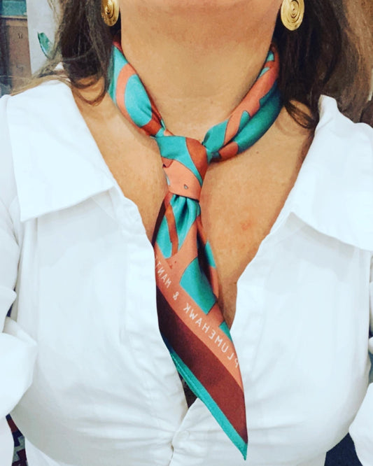 Unik sidenscarf 65 x 65 cm - Plymhöken och Mantelfalken