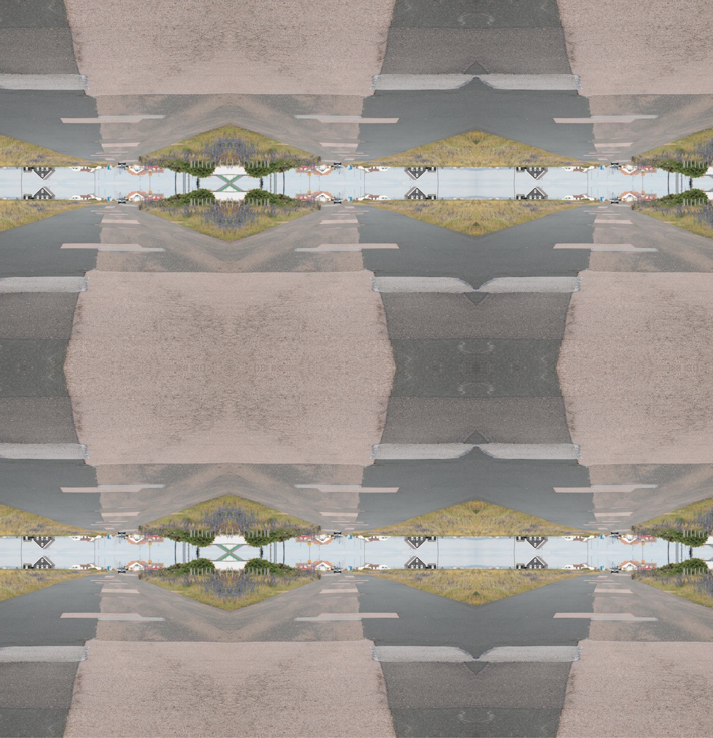 Med att skapa mönster av bilderna ville Helena testa och se vad hon kunde göra med alla landskapsfotografier som hon fått med mig hem från de olika resorna. Det var väldigt vackra landskap och fotona lite stumma av allt det vackra. När hon började se fotografierna som beståndsdelar kunde hon bryta upp bilderna och göra något abstrakt av de så realistiska landskapen. Försöka dekonstruerar och bygga upp igen. Abstrakta mönster av landskap uppstod och hon började se något annat i varje bild, började se vad landskapen bestod av. De tappade sina gränser och tillhörighet till de platser som de var tagna i.